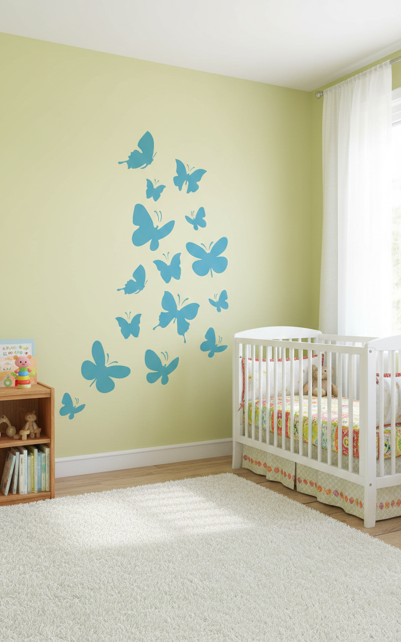 Butterfly Stencil with elegant butterfly silhouettes in flight, perfect for walls, crafts, fabrics, furniture, and DIY decoration.
