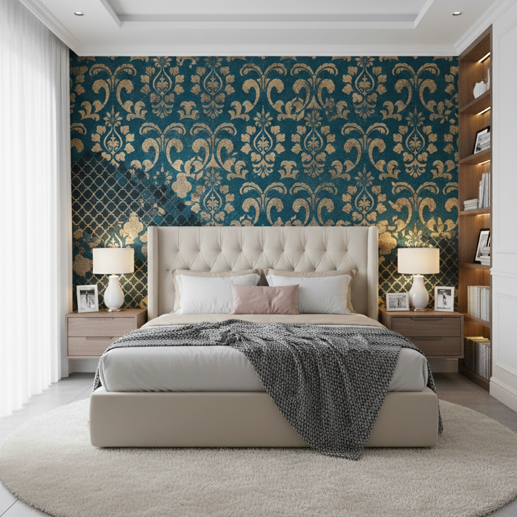 Damask & Moroccan Mix Stencil with a blend of damask elegance and Moroccan patterns, perfect for creative wall, floor, and craft decoration.