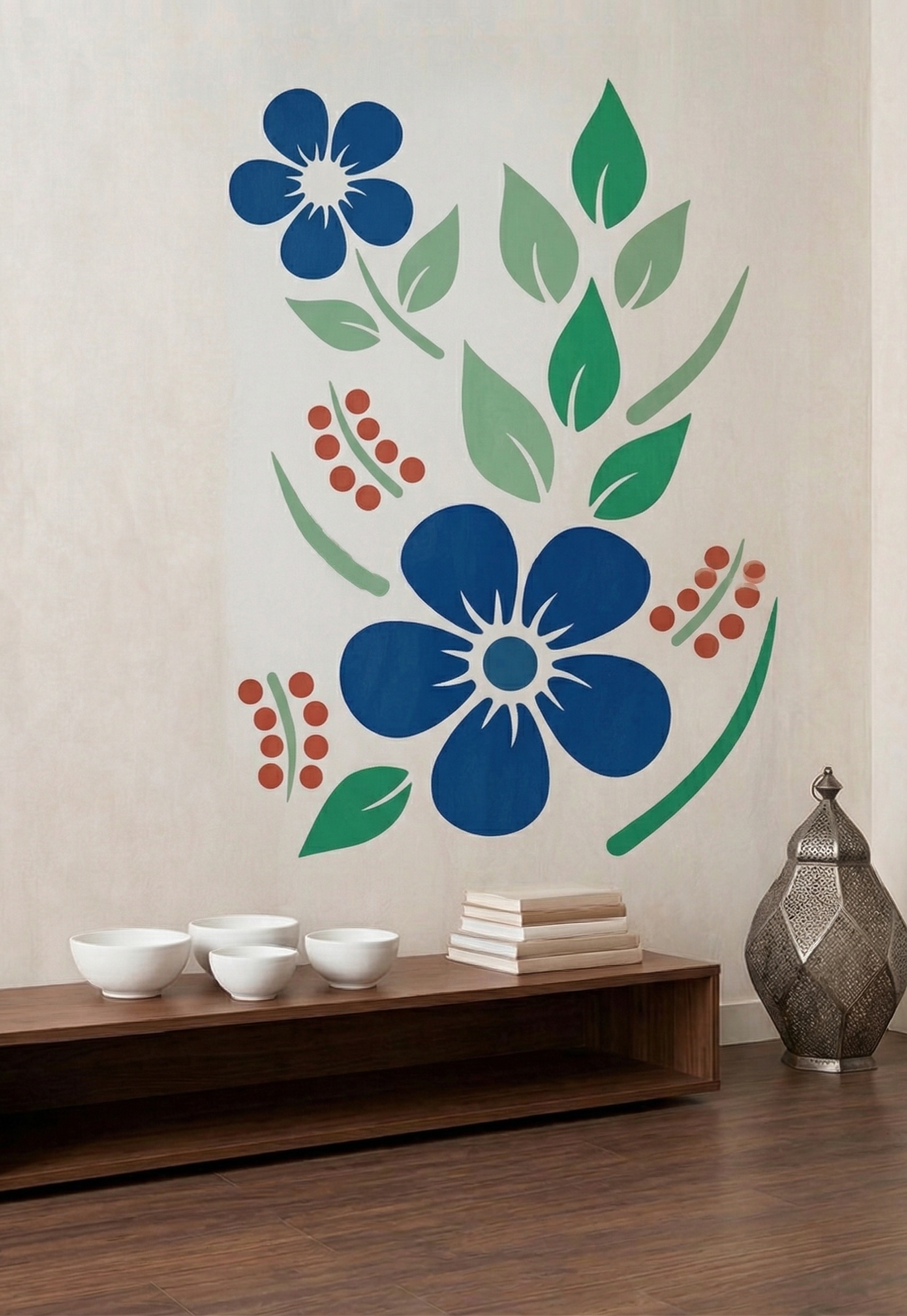 The Folk Floral Stencil blends simple petal shapes, leafy stems, and dotted accents to create a warm, handmade aesthetic. Perfect for adding personality to walls, furniture, textile projects, or craft surfaces, this stencil is ideal for rustic, folk, or nature-inspired decor.