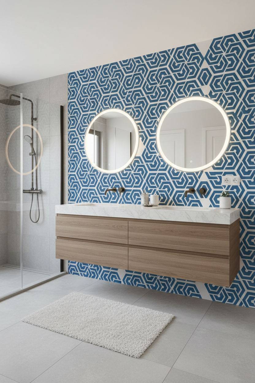 This Geometric Hexagon Stencil features a structured hexagon-based pattern designed for wall painting and decorative interior projects. The interlocking geometric layout creates a modern, continuous surface design suitable for feature walls, offices, living rooms, or contemporary interiors.
