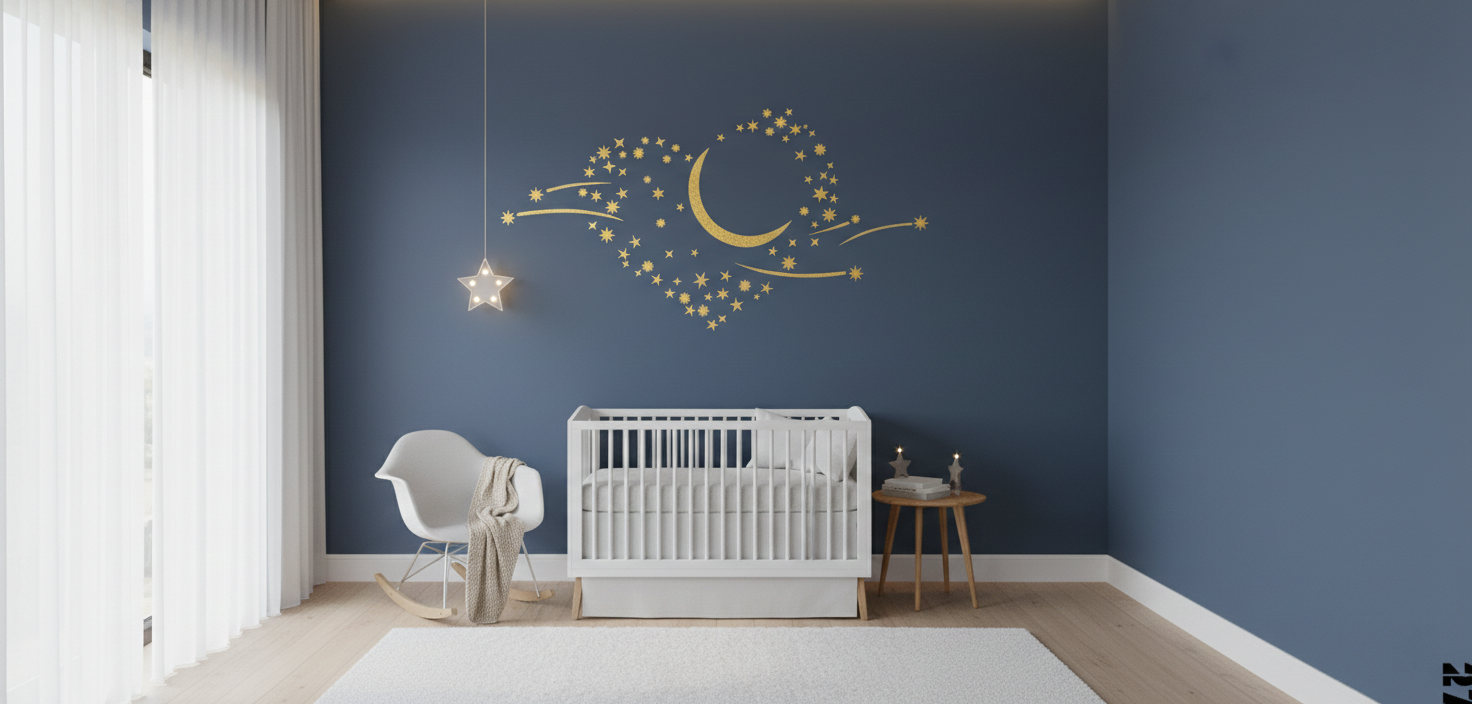 Moon and Stars Stencil with a crescent moon and surrounding star pattern, perfect for walls, furniture, crafts, and DIY decoration.