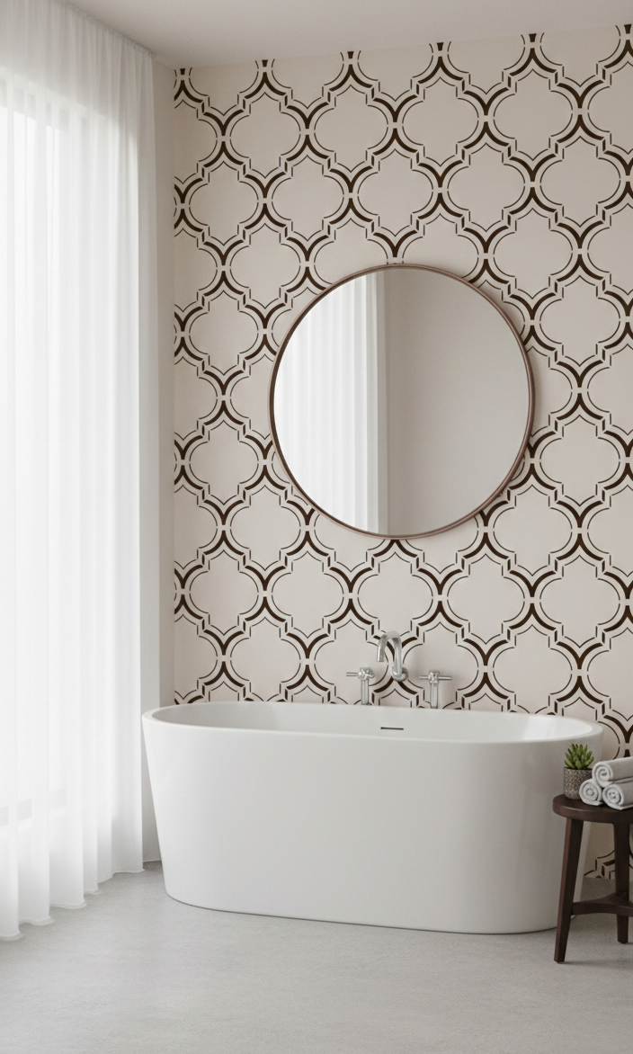 Its elegant Moroccan-inspired geometry brings depth and sophistication, perfect for modern accent walls or traditional design projects.