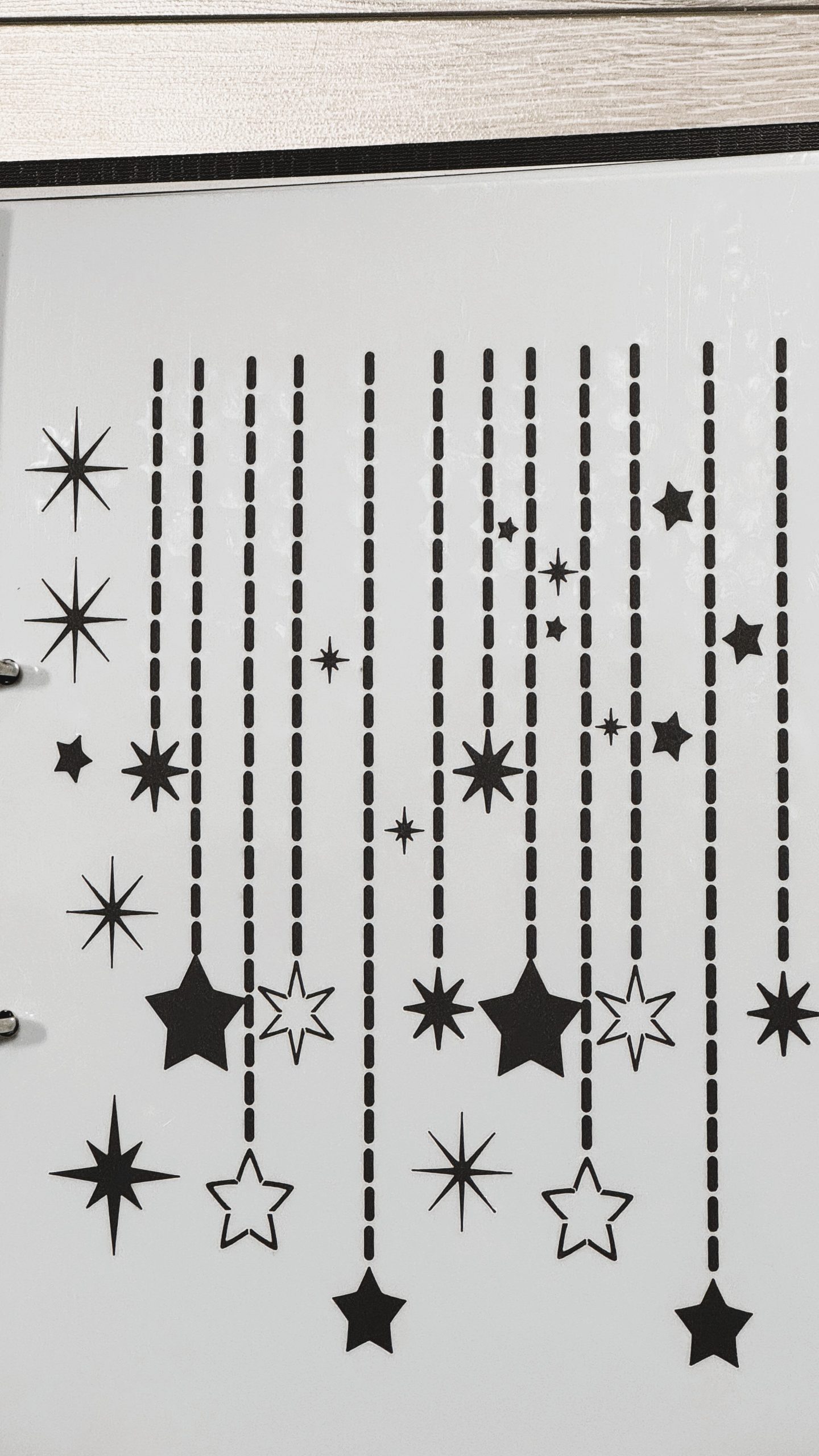 A celestial hanging star stencil designed for dreamy, elegant wall decor. Perfect for nurseries, bedrooms, and creative DIY projects.