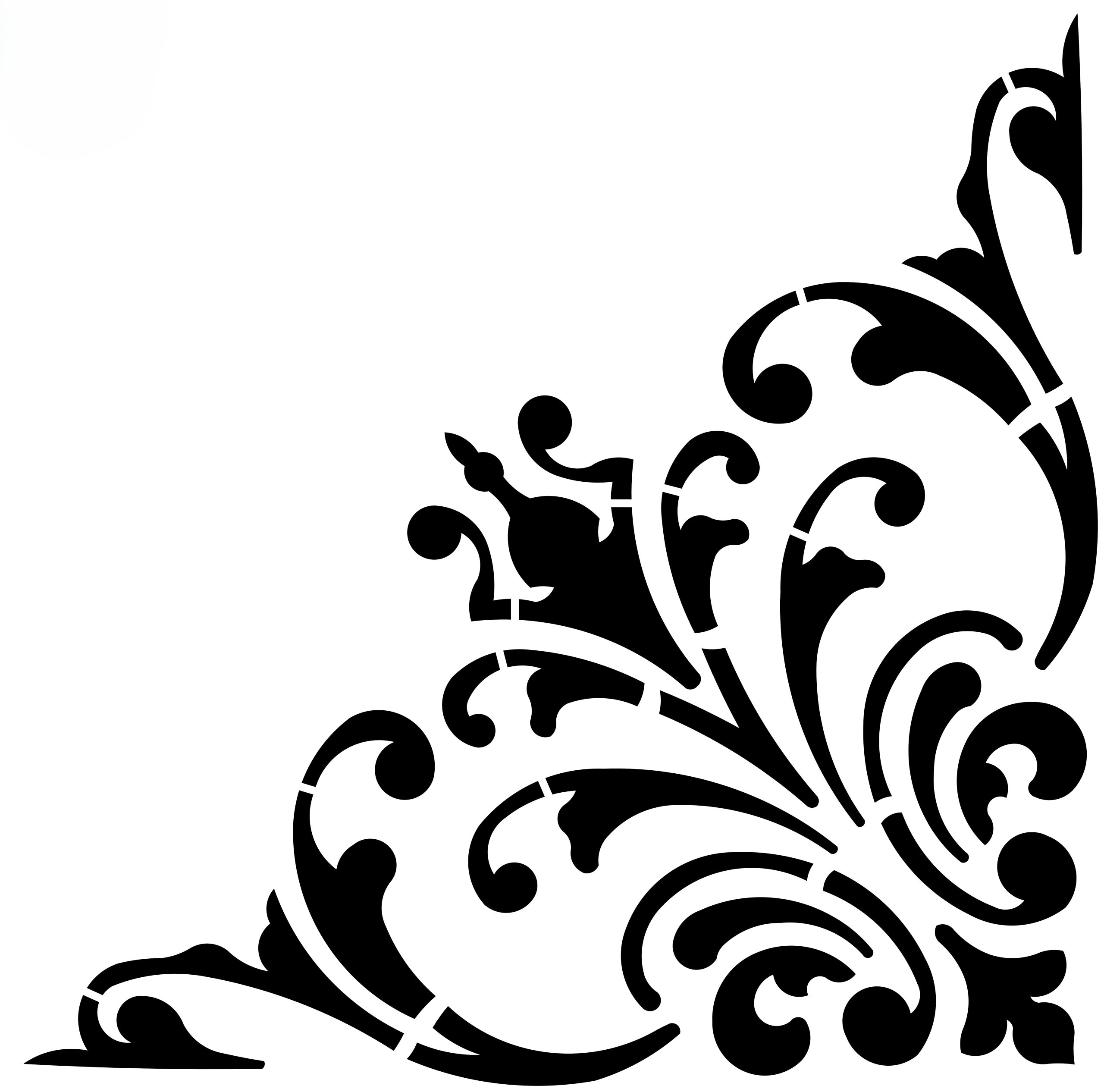 Elegant Damask Corner Stencil with ornamental damask details, ideal for stylish wall, furniture, fabric, and craft decoration.