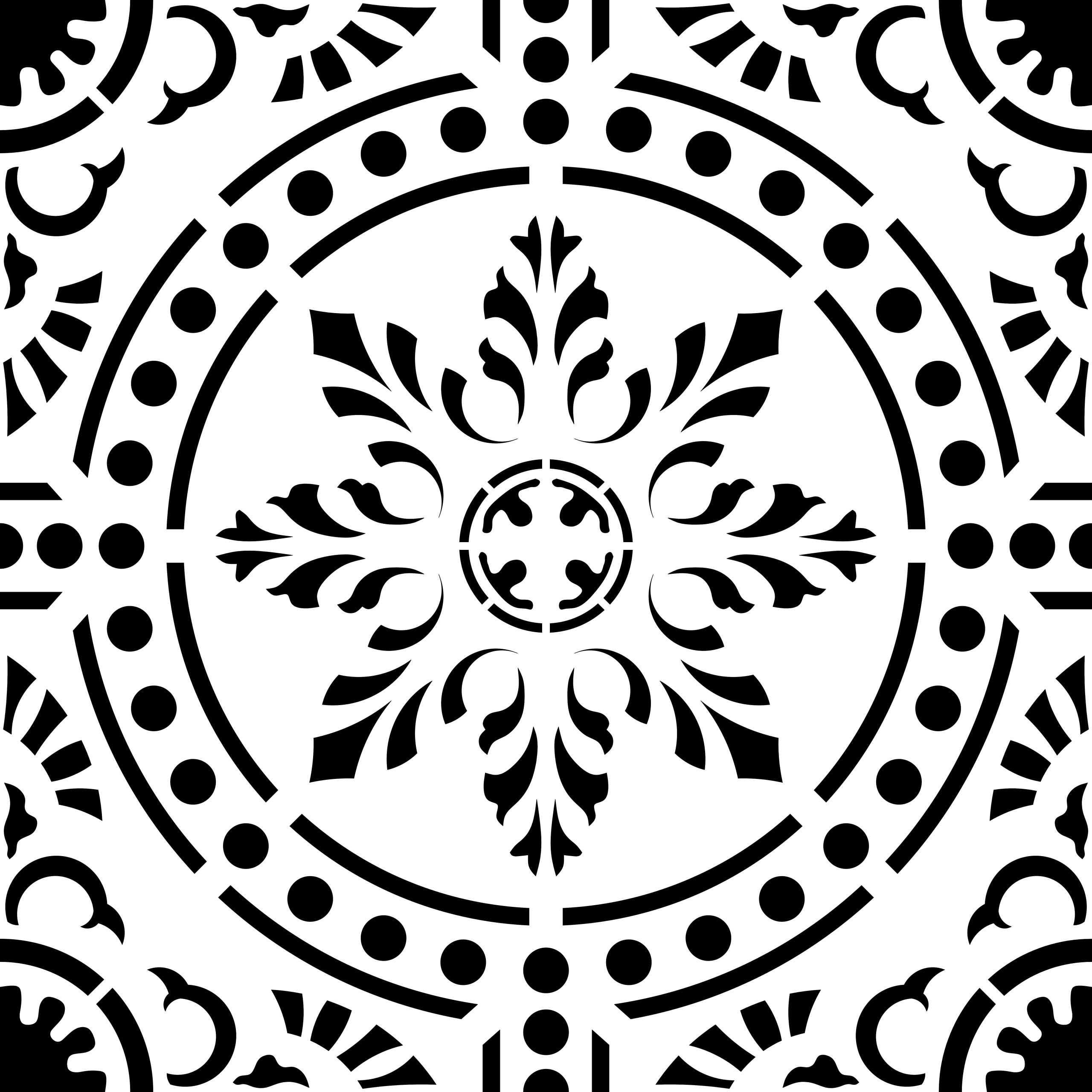 Ornamental Medallion Tile Stencil with a decorative circular floral and ornamental design, perfect for walls, floors, furniture, and DIY stencil projects.