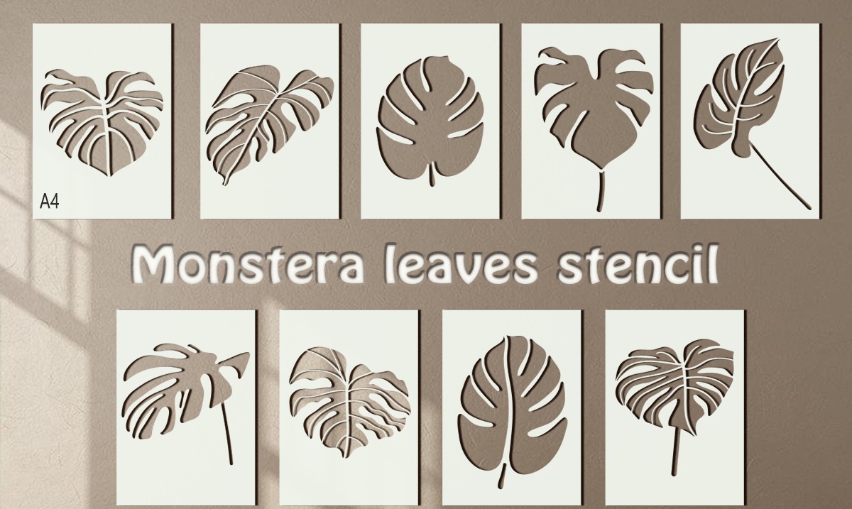 Monstera Leaves Stencil Set with multiple tropical leaf designs, ideal for walls, furniture, and creative DIY projects.