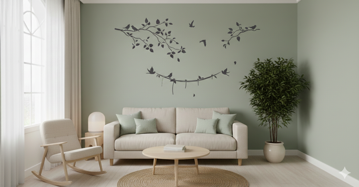Birds and Leaves Stencil with graceful bird silhouettes and leafy branches, ideal for wall décor, furniture accents, and creative crafts.