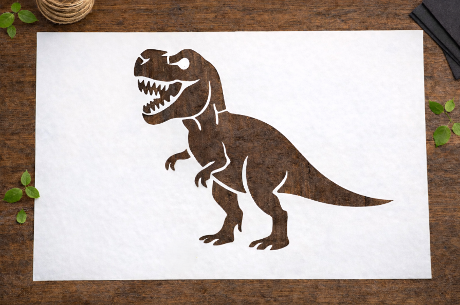 A Tyrannosaurus Rex Falfestősablon az ikonikus őskori ragadozó dizájnját tartalmazza, tökéletes gyerekszobák, játszószobák és dinoszaurusz-témájú DIY projektek dekorálásához.