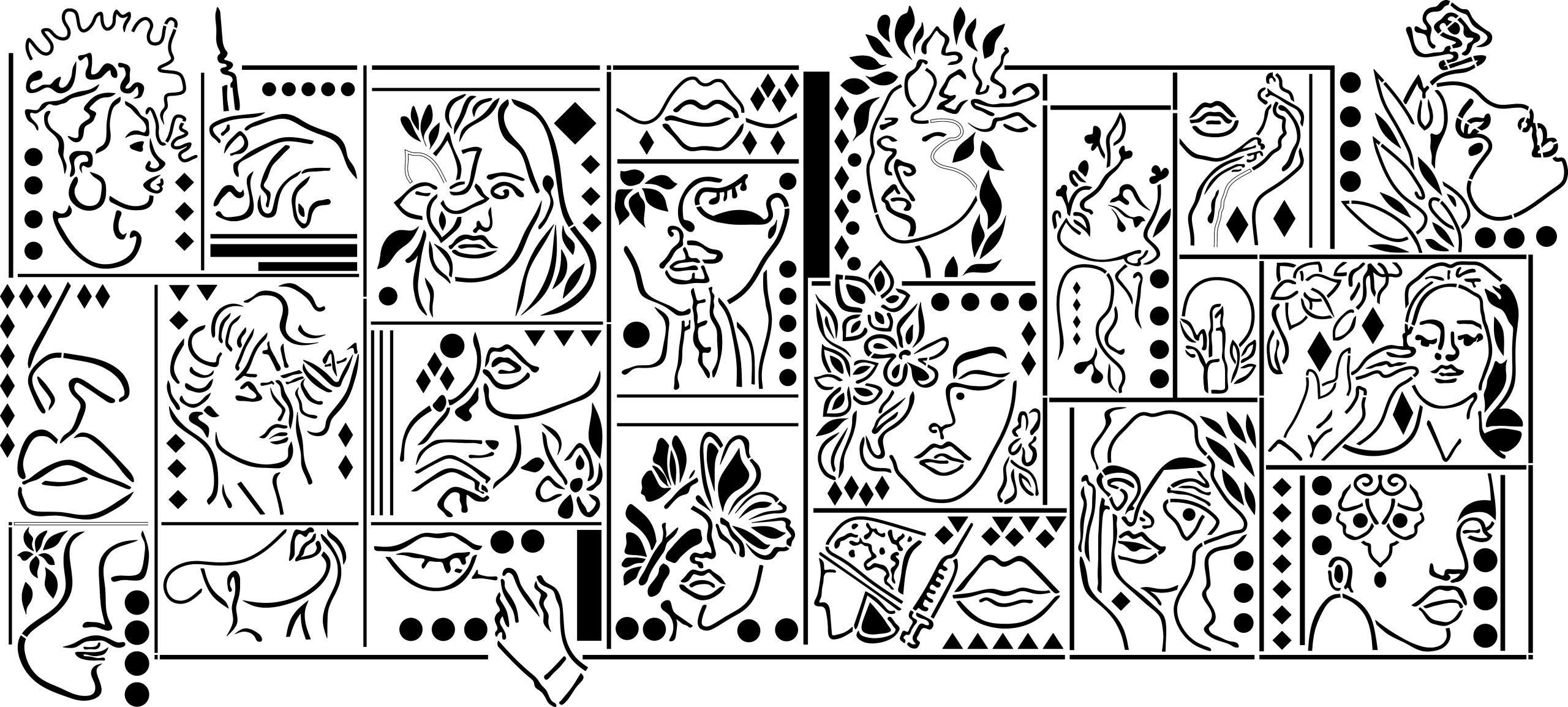 Each face and element tells a unique story, blending modern minimalism with artistic emotion. Whether you use it as a central wall piece or on furniture and canvas, the stencil adds sophistication and character to your project.